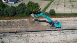 Il secondo lotto si articola su tre derivazioni principali, la prima verso Resana di circa 3,3 chilometri di lunghezza (DN300 a 75 bar), la seconda che si sviluppa verso Castelfranco Veneto (DN200 a 75 bar, per 2,35 chilometri complessivi), la terza che raggiunge Piombino Dese, caratterizzata da un DN200 a 75 bar per un’estensione di linea di 3,73 chilometri. Anche in questo caso abbiamo dovuto risolvere interferenze con infrastrutture stradali (le Strade Regionali 245, 307 e nuovamente la 308, il fiume Marzenego) e con aste irrigue, realizzate quando possibile con tecnica TOC per ridurne l’impatto ambientale sull’intorno.